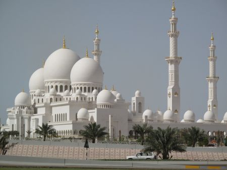 Шейх Зайед мешіті – әлемдегі үшінші үлкен мешіт. Мешіттің атауы - Біріккен Араб Әмірлігінің негізін қалаушы шейх Зайед ибн Сұлтанның құрметіне берілген. Салтанатты ғимарат өзінің үлкендігмен және әсемдігімен ысылмаған көрерменнің өзін таңқалдыра алады. Өйткені мешіттің дизайнерлік және материал таңдау жұмыстарымен өз ісінің ең үздік шеберлері айналысқан болатын. Олар Италиядан, Германиядан, Мароккодан, Үндістаннан, Түркиядан, Ираннан, Қытайдан, Грекидан шақырылды.