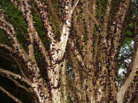 Джаботикаба жемісінің пісу маусымында қала көшелеріне бойында күңгірт-қара түсті жеміс толы қаптарын тізіп қойған көше сатушылары жайғасады.