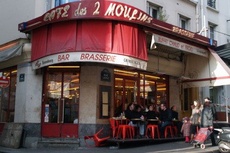 Амели даяшы болып жұмыс жасайтын «Две мельницы» дәмханасы өмірде бар. Оның мекен-жайы: Лепик көшесі, 15 үй. Жеміс сатушысы қызмет көрсететін Au Marché de la Butte лашығы да осы дәмхананың маңында орналасқан.