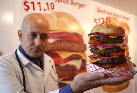 3 мың доллар тұратын бір бургерде – 10 000 калория бар. Бұл бүкіләлемдік рекорд. Былтырғы жылы мейрамхана тағамдарын жеген екі келуші жүрек ауруына душар болады. Ал жақында дәл осындай бургер мен Маргарита ішімдігін ішіп отырған бикеш есінен танып қалады да, ауруханадан бір-ақ шығады.
