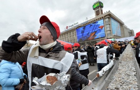 Бұл күнгі мерекеде ұзындығы 150.6 метр ұзындықтағы 200 кг ет бір темірге өткізіліп, Украина тарихына ең ұзын кәуап болып жазылды.