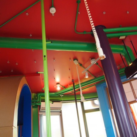 «Тағдыр қайтымдылығы» кешені түрлі калибрлі бетонды блоктардан соғылған және бұл жерден біркелкі пішіндерді де, түстерді де көре алмайсыз. Ашық түстерге боялған шұңқыр едендер, ойыс қабырғалар, абыл-сабыл қойылған есіктер мен терезелер, қолжетімсіз жерлерге орналастырылған розеткалар мен тоқ қосқыштар, едендегі суға батып бара жатқан асхана, тек қана еңкейіп немесе еңбектеп өтуге болатын есік тесіктері - бәрі де сіздің қырағылығыңызды арттырып, ойыңызды түбегейлі өзгертіп жібереді. Қалыпты тіршілігіңізді төңкеріп жіберуге дейін барады. Авторлар аттракцион-үйлер арқылы адамның өмірге, үйге деген көзқарасын өзгертуді, қиыншылықтарға қарсы тұруға үйретуді көздеген.
