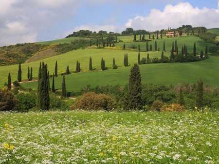 Тоскан Данте мен Микеланджелоның заманында суретшілер мен ақындарды шабытқа бөлейтін таңғажайып жер болған. Лукка мен Флоренцияның базарлы аймақтары қайта өрлеу дәуірінің архитектурасы мен заманауи шулы энергиямен жабдықталған дүкендар мен дәмханаларға толы. Бірақ, бұл жердің басты байлығы есте мәңгілік қалар пейзаждар. Тоскан территориясының үштен бір бөлігін қарасаң көзің тоймайтын, түрлі-түсті түстерге бояла созылып жатқан төмпешіктер алып жатыр. Суретшінің бояулар құйылған тақтайшасынан айнымайды. Кең даладағы жасыл алқап алтын түсті күнбағыстармен өзара үндесіп, көк аспанның астында бейбітшілік орнатып тұр. Тоскан пейзаждары күн арайына малынған жүзімдерсіз, сарбаздардай тізілген зәйтүн ағашынсыз болмайды.