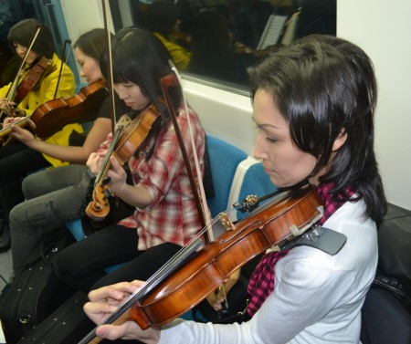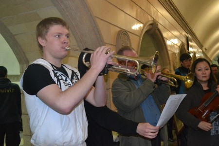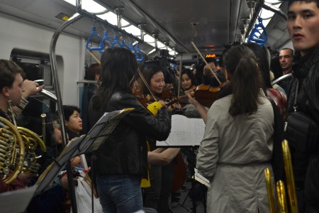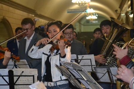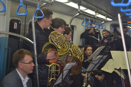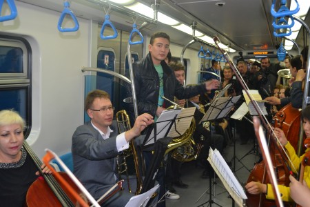 Симфониялық оркестрдің музыканттары ең алғаш рет метрода өнер көрсетті. Бұл жоспар оңайға да түспеген сыңайлы. Өйткені қозғалып бара жатқан поезда жолаушылармен бірге сығылысып музыкалық сайманмен өнер көрсету күрделі екені рас.