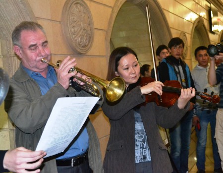 Халықтың қошеметіне ие болған музыканттар "Алмалы" станциясына қайтарда да осы репертуардағы әуендерді қайта ойнады.