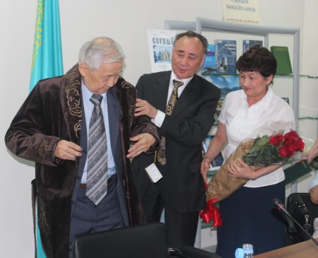 ҚазБСҚА проректоры Г. Абрасилова Сырым Бөкейхановқа шапан жауып, құрмет білдірді