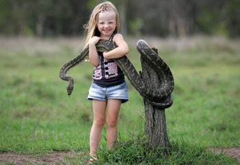 Австралиялық Хэйли есімді бүлдіршін өгей әкесі баққан Мюррей атты жыланмен жақын дос екен. Бұл жыланның ауырлығының өзі Хэйлидің дене салмағынан ауырлау. Ал ұзындығы оның бой биіктігінің үш есесіндей. Бұл екі дос кейде ренжісіп те қалады екен. Ондайда Мюррей досының төсегіне өзі іздеп келіп, қыр соңынан қалмай қояды екен. Оның әкесі: «Бұл жылан ежелден адамға зақым тигізіп көрген жоқ. Тіпті мінезі де салмақты. Мен оның жанында қызымды өте қауіпсіз сезінемін» дейді.
