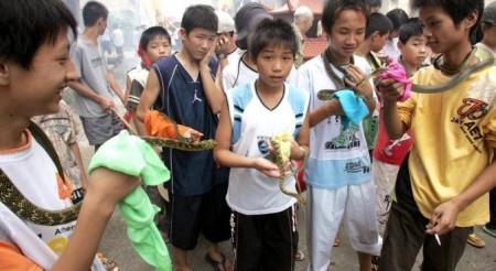 Қытайдың Фу Жиан өлкесі Нан Пың ауданындағы тұрғындар жыл сайын «жыланға табыну» мерекесін өткізіп тұрады. Ондағы жергілікті тұрғындар ешқашан жыланнан қорықпайды. Әр жылы осы мереке қарсаңында жас балалар қолына, мойнына жылан орап саяхатшыларды баурайды. Олардың айтуынша «жыланға табыну» салтының мың жылдық тарихы бар екен.
