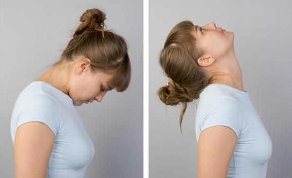1. Басыңызды оңға және солға 10-15 рет бұрыңыз. Содан соң иегіңізді төмен түсіріп, қайтадан орнына әкеліңіз. Оны 10 рет қайталаңыз.