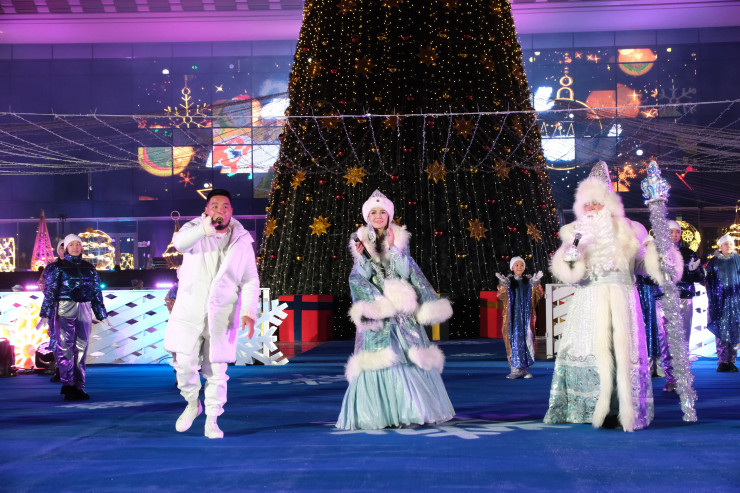 Эстрада жұлдыздарымен бірге, аниматорлар мен қуыршақтар және 2023 жылдың символы – қоянның бейнесі мерекелік көңіл күй сыйлады.